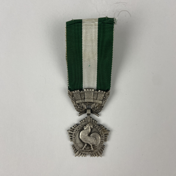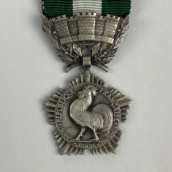 Fue otorgado por el Ministerio del Interior. En el anverso lleva representado un Gallo Galo gravado Republique Française. En el reverso puede leerse Collectivites Locales. En excelente estado de conservación.