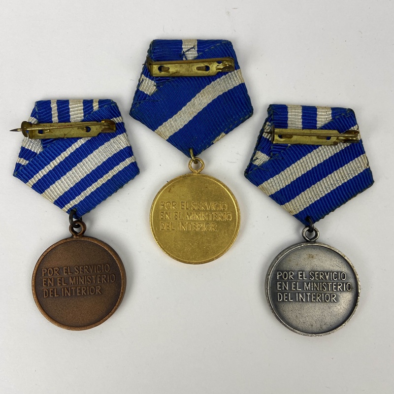 Medallas por servicio en el Ministerio del Interior de la República de Cuba. Conjunto completo por 10, 15 y 20 años de servicio.