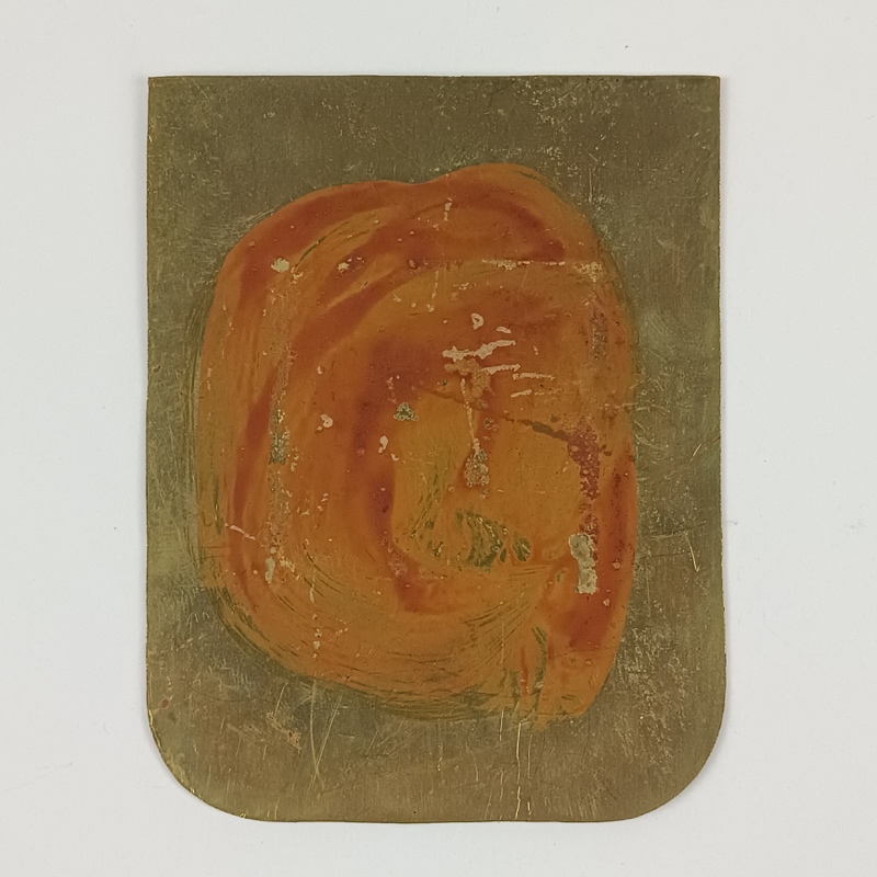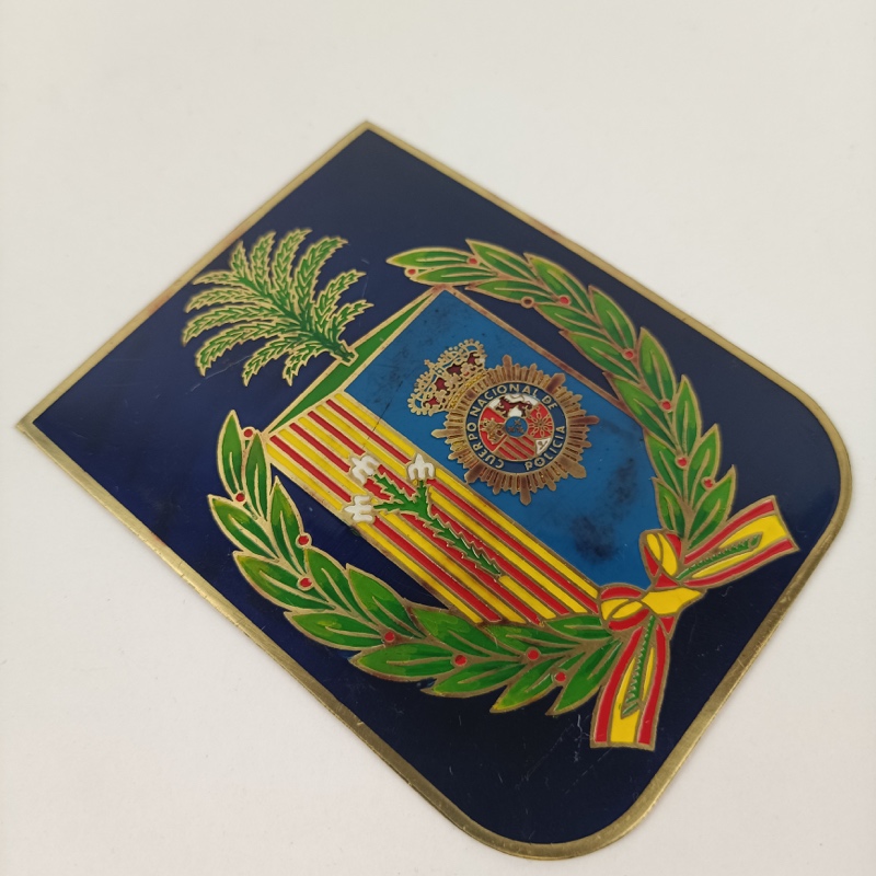 Metopa del Cuerpo Nacional de Policía, de latón con pintura esmaltada en su superficie. Sin el soporte de madera. De los años 80.