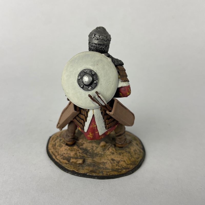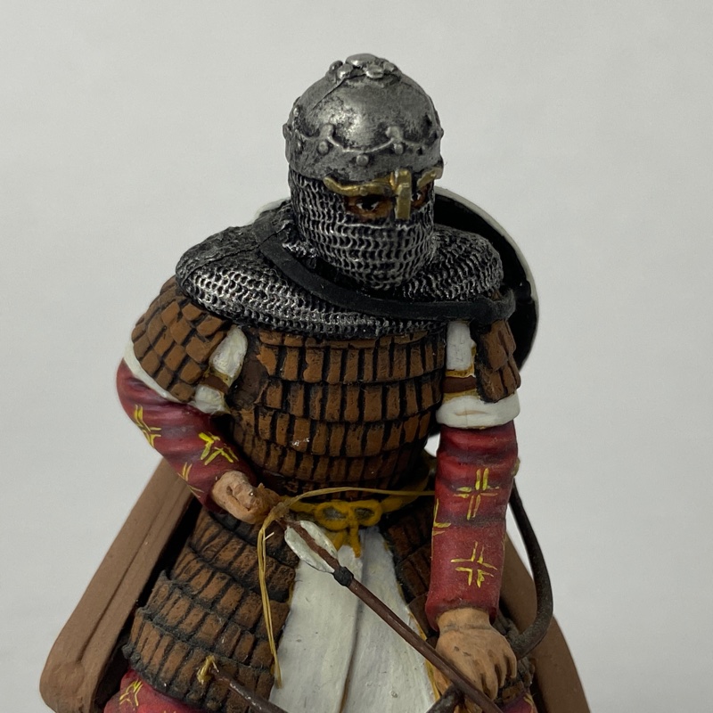 Destaca el buen nivel de acabado de la pintura realizada a mano, con especial atención en la textura de la armadura lamelar, el entramado de la cota de malla y los detalles del casco y armamento. El conjunto presenta un acabado realista que resalta el carácter histórico de la pieza.