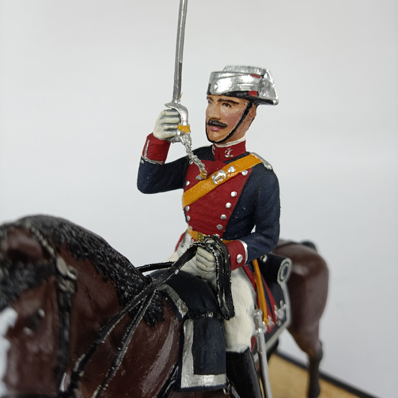 Destaca el alto nivel de detalle en el uniforme, caballo y equipo de montura, así como el cuidado trabajo de pintura en los tonos del caballo, los metales del casco y el sable, y los colores reglamentarios del uniforme. Muy buen tratamiento de luces y sombras en las superficies del caballo y la vestimenta, con un acabado general muy vistoso y de gran calidad, con excelente definición en los detalles pintados a mano, tal como se aprecia en las fotografías.