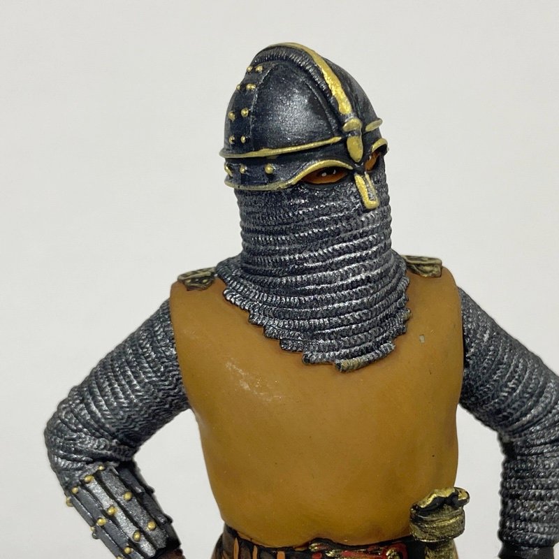 Destaca el alto nivel de detalle en el casco anglosajón, la cota de malla y el equipo, así como el cuidado trabajo de pintura en los efectos metálicos y en los tonos de cuero del cinturón y accesorios. Muy buen tratamiento de luces y sombras en la malla y excelente acabado general pintado a mano, con gran definición en los detalles, tal como se aprecia en las fotografías.