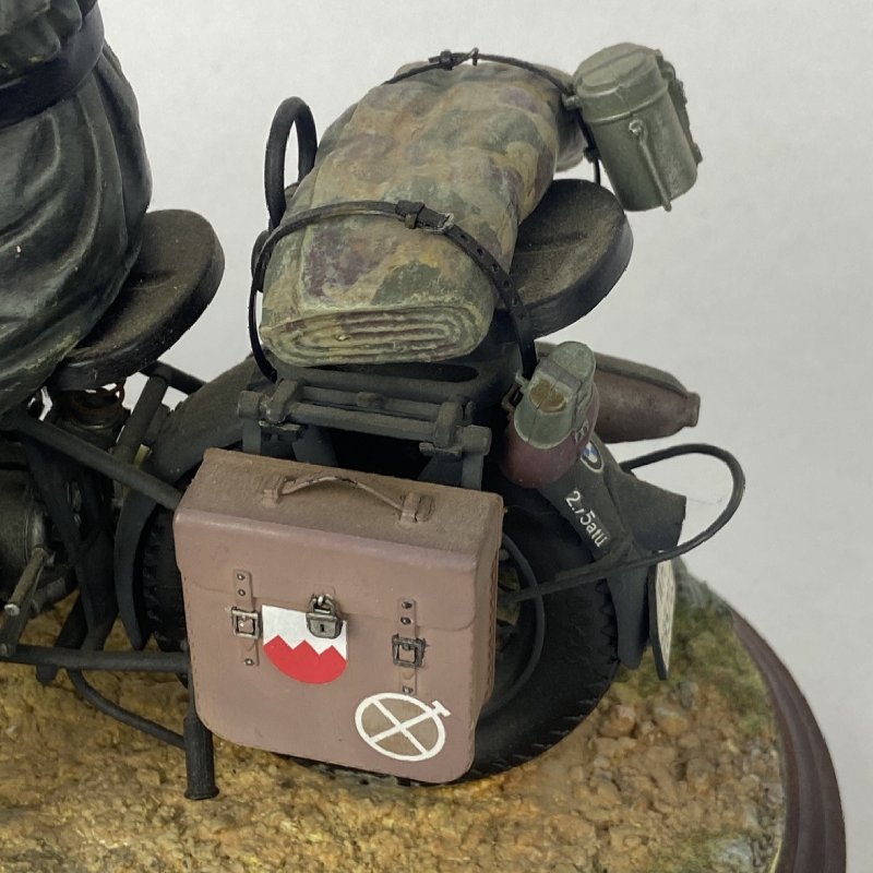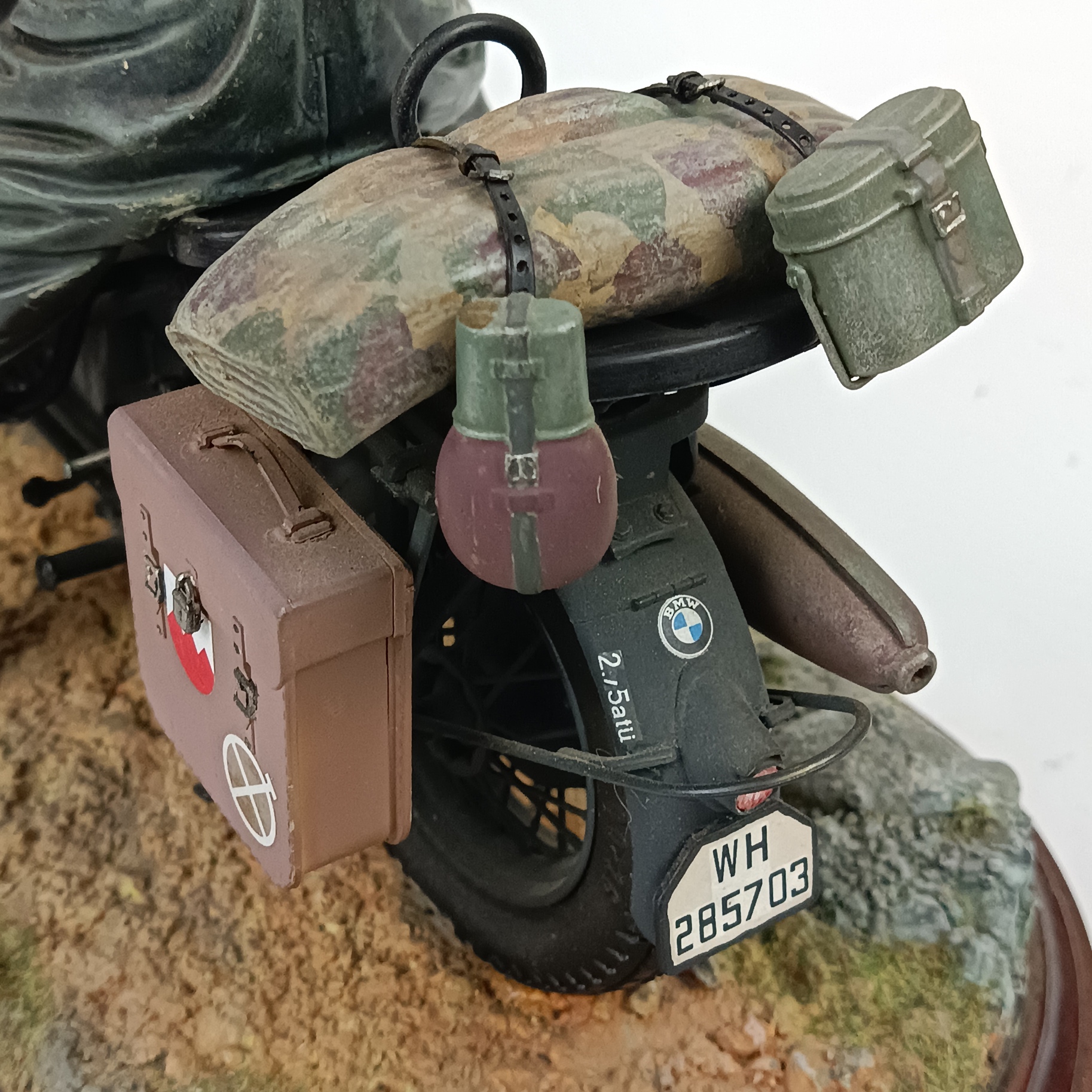 Moto BMW R75 de la Policía Militar o Feldgendarmerie a escala 1:9, Miniatura montada y pintada a mano.