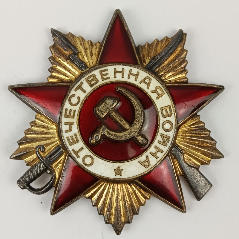 Orden de la Guerra Patria de 1 Clase, modelo 1985 otorgado a veteranos durante el 40 aniversario de la victoria en la segunda Guerra Mundial.