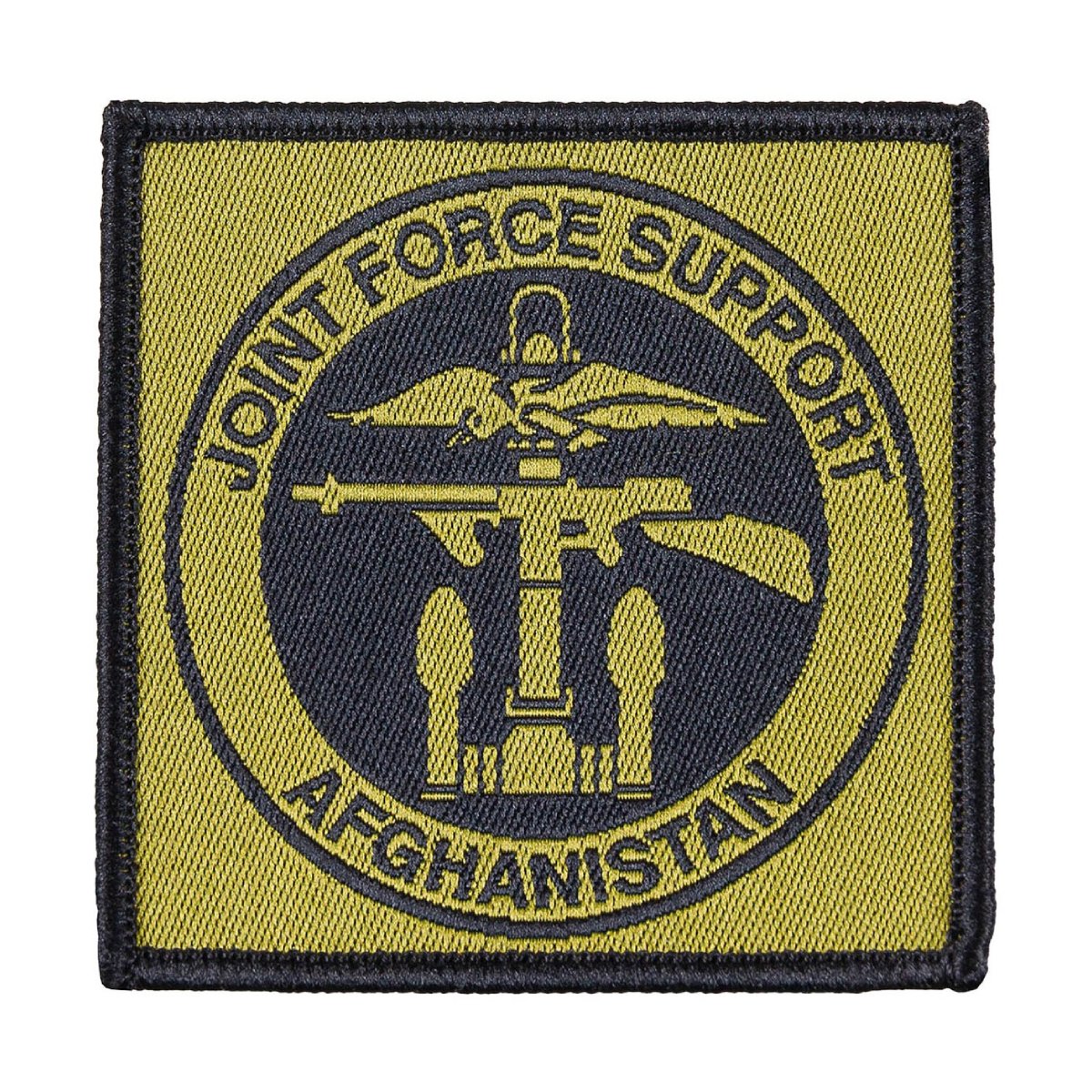 Parche del Joint Force Support en Afganistán, cuartel general del Reino Unido que gestionaba la logística, equipos y personal médico de la misión liderada por la OTAN en Afganistán desde 2001 hasta 2014.