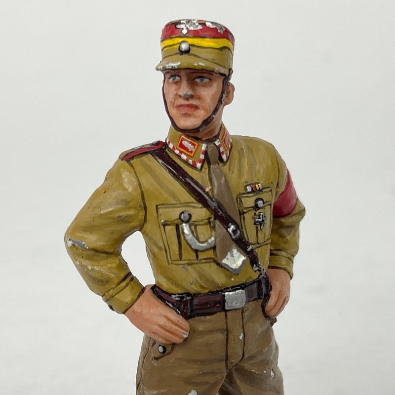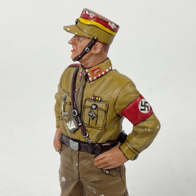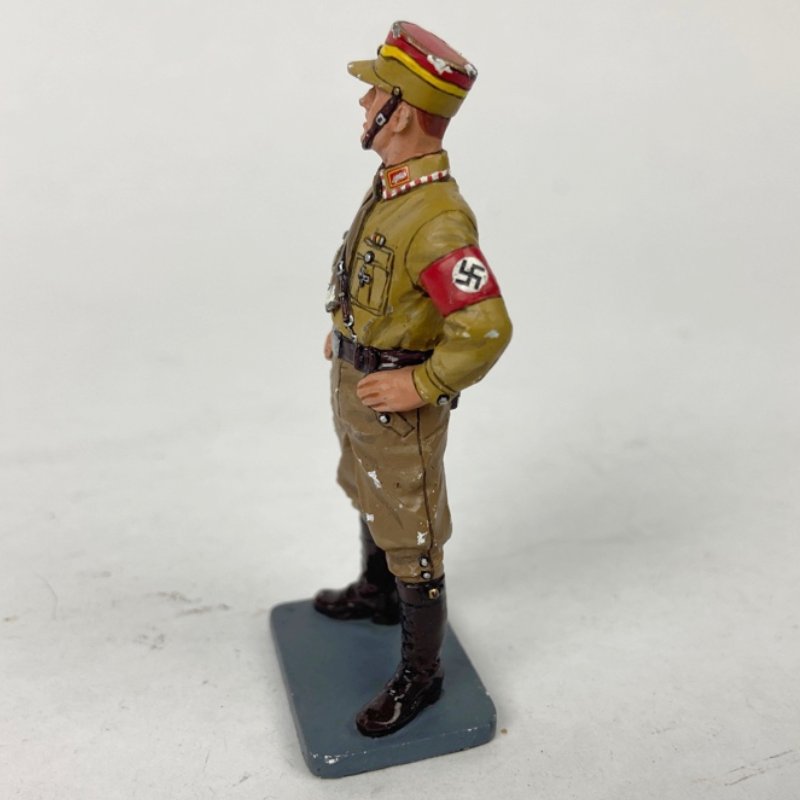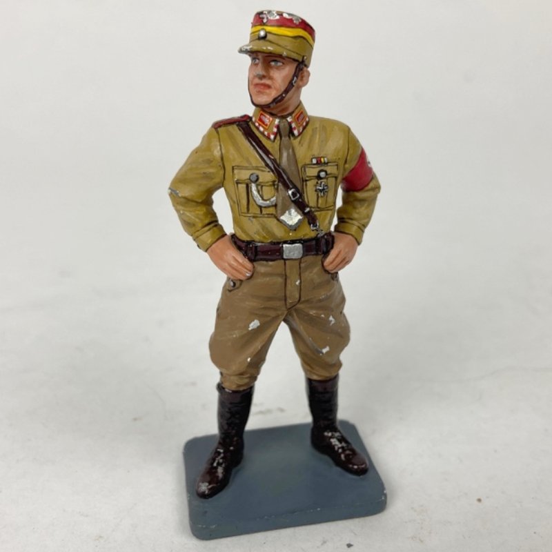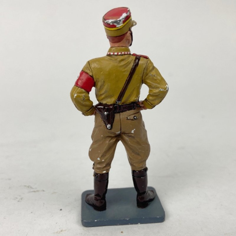 Soldado de plomo Alemán vestido en uniforme de gala para SA o Sección de Asalto del Tercer Reich. Magnífico trabajo de pintura y acabado aunque presenta algunas picaduras.