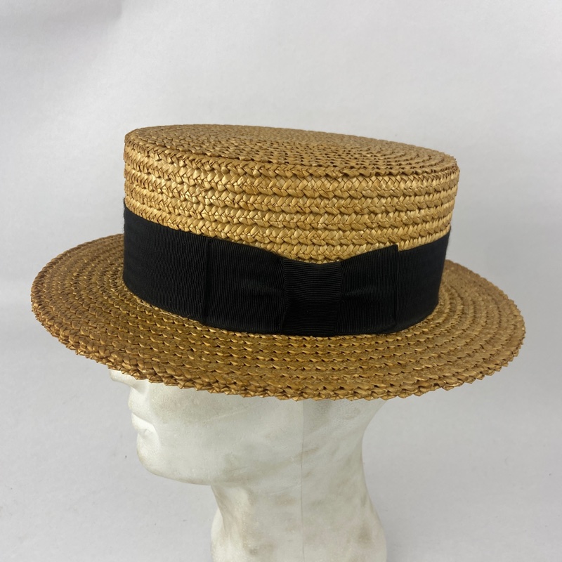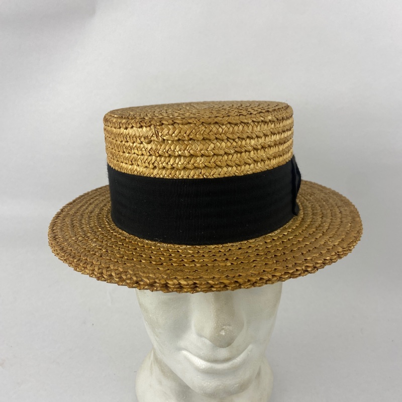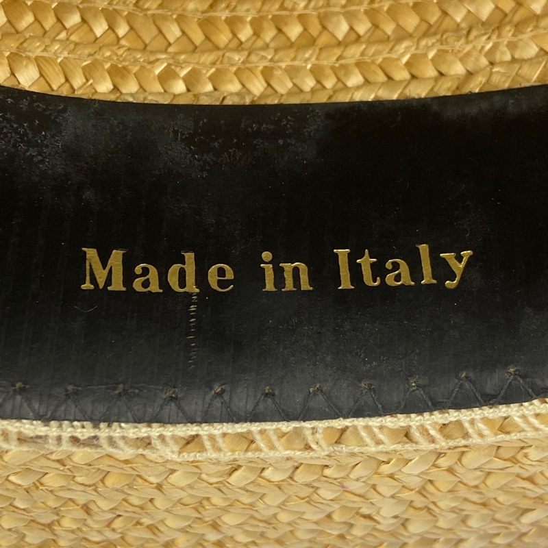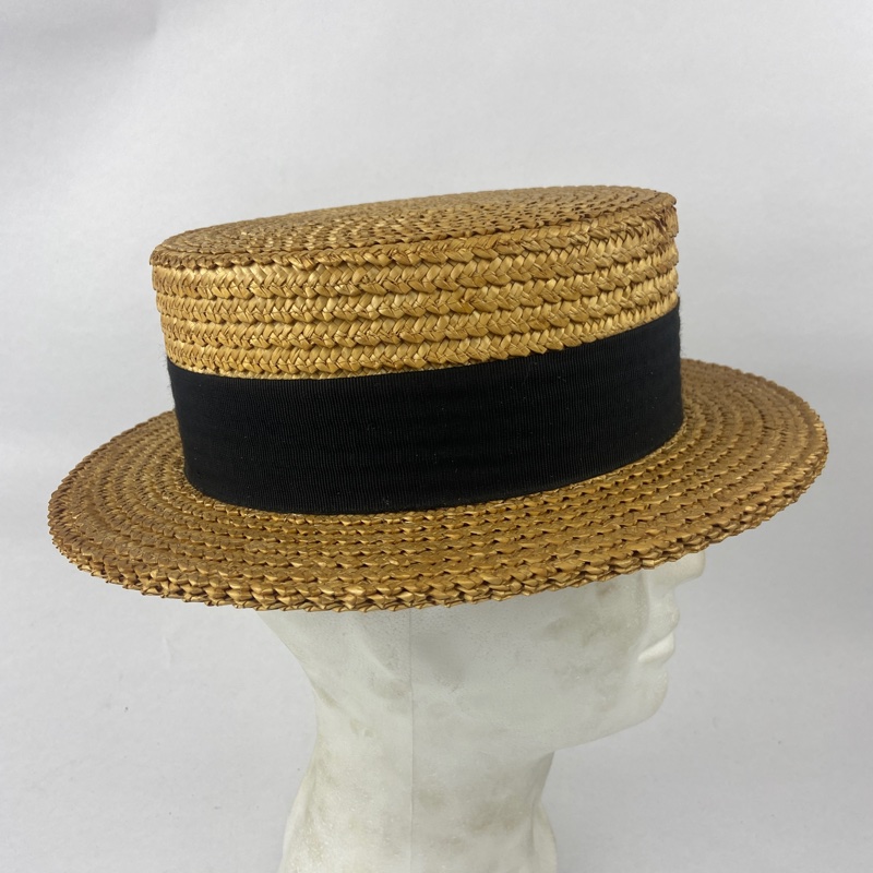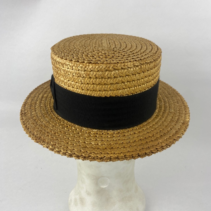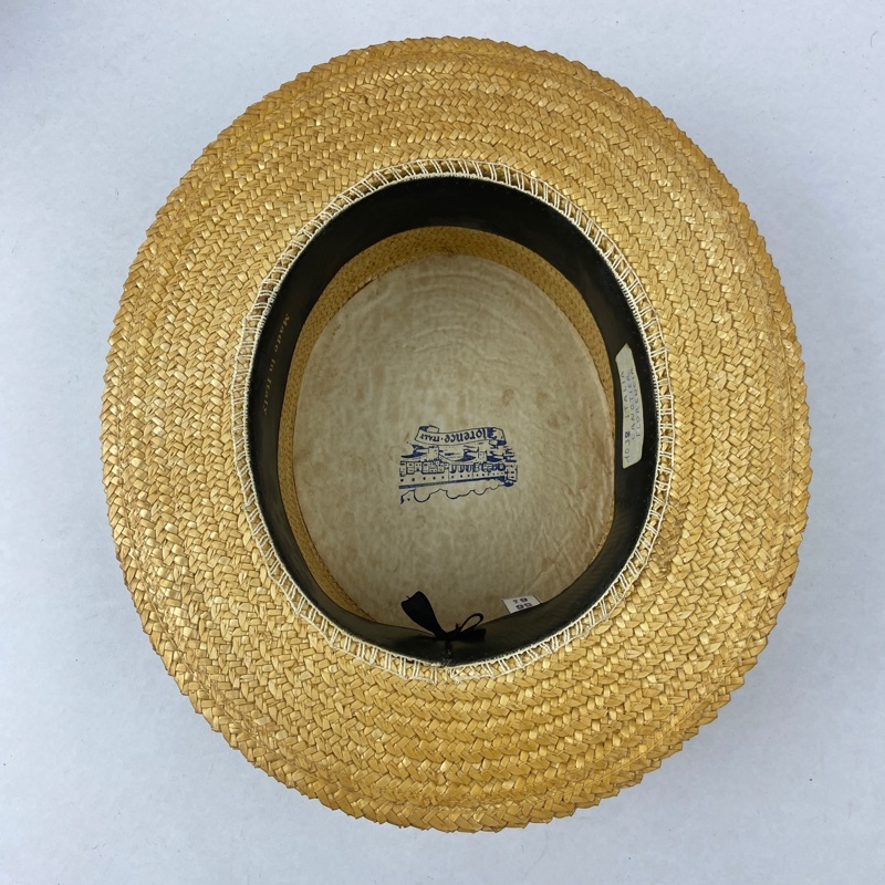 Sombrero de paja trenzada estilo canotier, fabricado en Italia (Florencia).