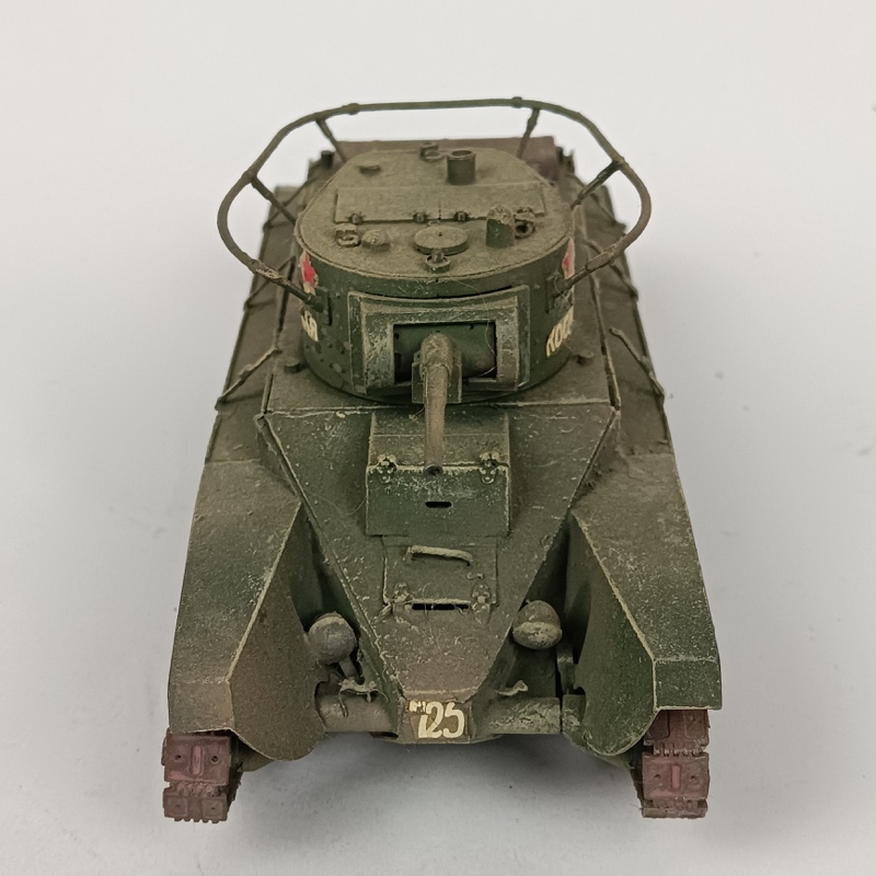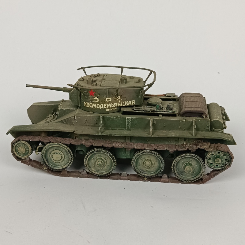 En el estado en el cual se aprecia en las fotografías. Carro de combate creado en la década de 1930 por el ejército soviético como “Tanques de Caballería”. Con torreta y cañón móvil, camuflaje verde y detalles realistas.