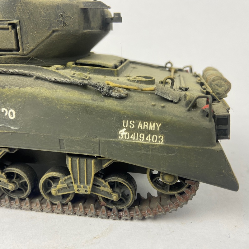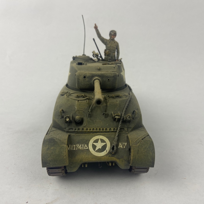 En el estado en el cual se aprecia en las fotografías. Modelo representativo de la Segunda Guerra Mundial, con torreta y cañón móvil, camuflaje verde oliva, estrella americana y tripulante en escotilla con detalles realistas. Modelo con cañón largo de 76 mm.