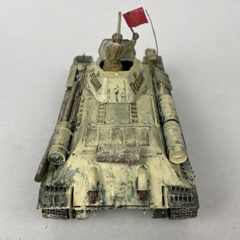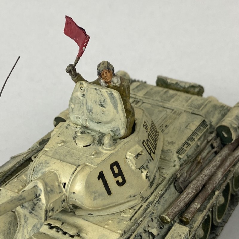 En el estado en el cual se aprecia en las fotografías. Carro de combate del Ejército Soviético con torreta con un tripulante en la parte superior.