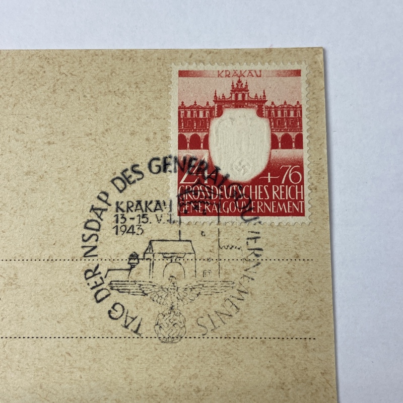 Tarjeta en perfecto estado, editada por el Gobierno General en Polonia durante la ocupación Alemana. Sello y matasello original en la parte posterior. Originales, nuevas sin circular en perfecto estado de conservación.