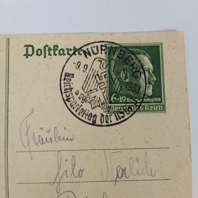 Tarjeta con sello matasellado de Nuremberg, fechada el 9 de Septiembre de 1938. Sin dobleces ni desperfectos.