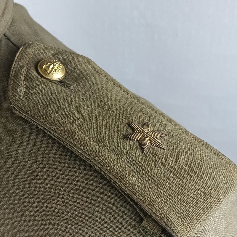 Uniforme de Paseo Reglamento 43 del Ejército Español. Modelo con chaqueta tipo Sahariana. Rango de alférez en la hombrera del mismo.