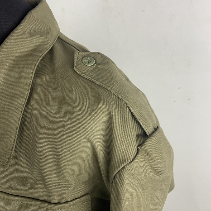 Chaqueta de cuartel M67 con dos bolsillos en el pecho y frontal abotonado, utilizada por la tropa, para estancia en la base o labores en calle. Pantalón de faena correspondiente.